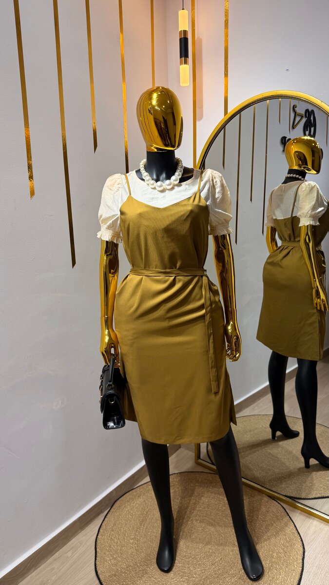 Découvrez cette robe en satin doré, parfaite pour toute occasion spéciale. Avec ses manches bouffantes et sa coupe flatteuse, elle allie confort et style. Idéale pour une soirée chic ou un événement professionnel, elle sera un atout incontournable dans votre garde-robe. Associez-la à des accessoires minimalistes pour un look raffiné.
