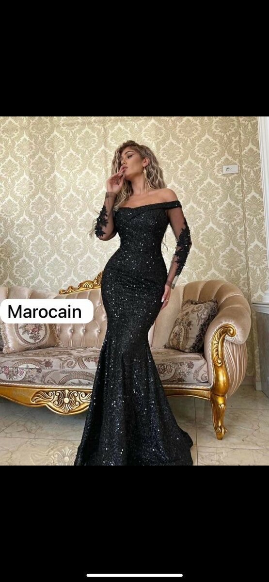 Cette robe de soirée en sequins noir apporte une touche de glamour à votre garde-robe. Avec ses manches longues et son décolleté séduisant, elle est parfaite pour les événements formels. Fabriquée en tissu de haute qualité, elle offre confort et style.