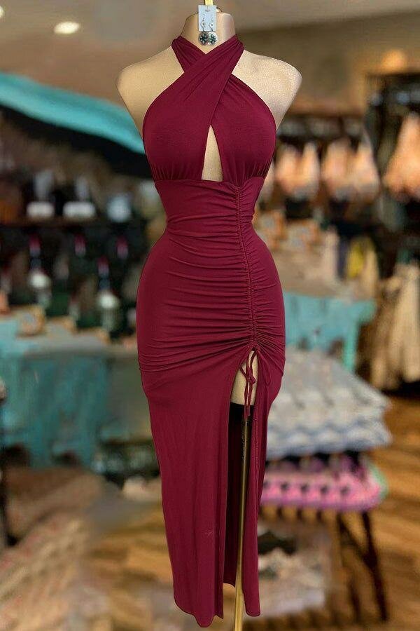 Cette robe longue bordeaux avec encolure croisée est parfaite pour des occasions spéciales. Son design moulant met en valeur votre silhouette, tandis que la fente ajoute une touche séduisante. Idéale pour soirées et événements élégants.