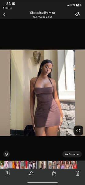 Robe élégante et sensuelle pour une soirée inoubliable. Sa couleur marron souligne votre silhouette avec une sophistication moderne. Parfaite pour des occasions spéciales.