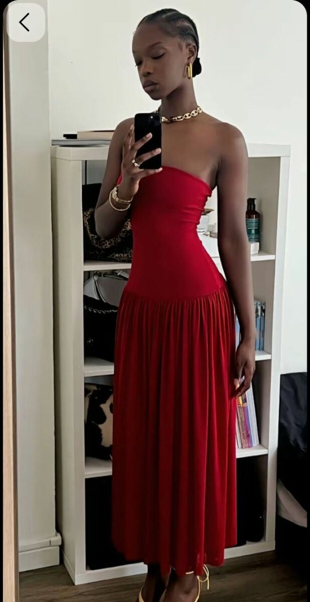 Découvrez notre élégante robe rouge, parfaite pour les soirées. Son design sans bretelles et sa coupe flatteuse mettent en valeur votre silhouette. Idéale pour un look chic et sophistiqué.