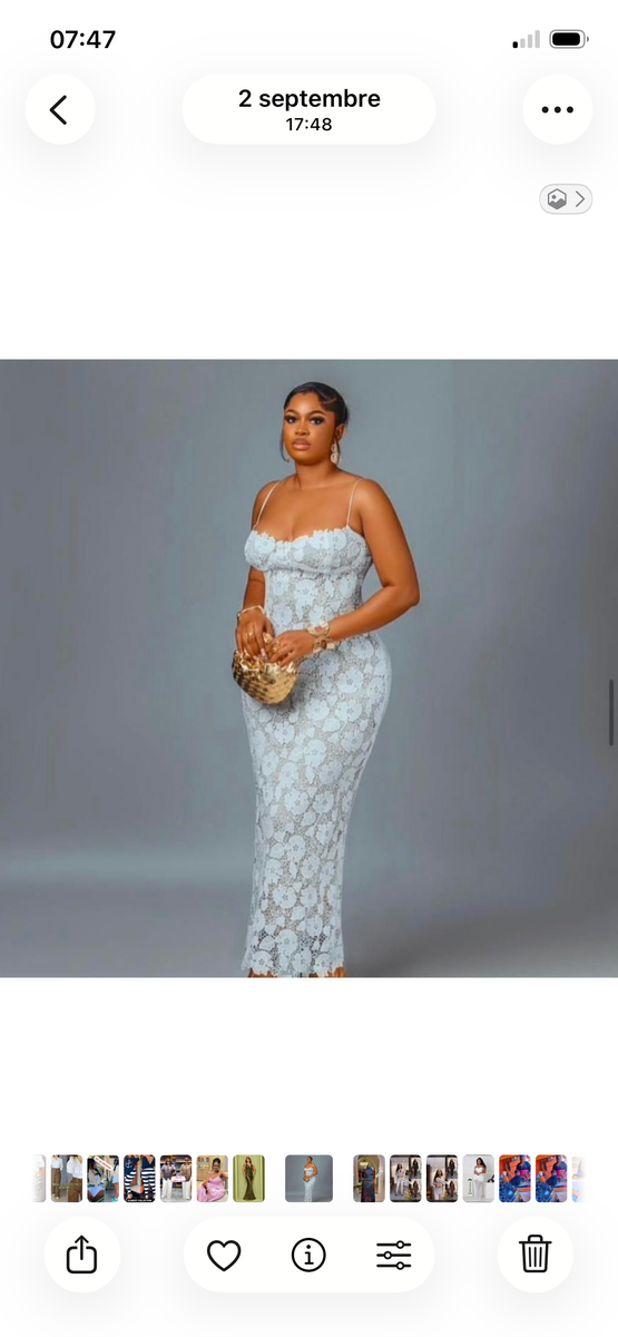 Robe élégante en dentelle pour femme, parfaite pour les soirées et événements spéciaux. Confectionnée en tissu de haute qualité, elle assure confort et style. Idéale pour se démarquer avec grâce et sophistication lors de vos sorties.