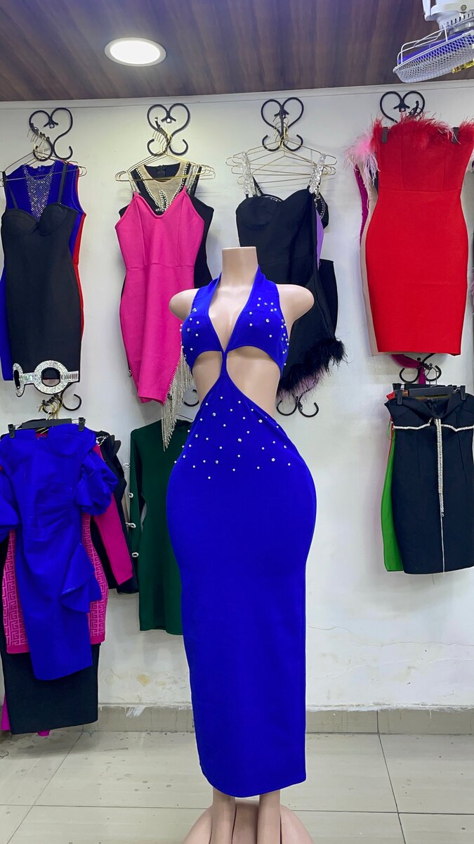 Transformez-vous avec cette robe de soirée élégante ornée de strass scintillants. Avec sa coupe ajustée et ses détails sophistiqués, elle est parfaite pour briller lors de soirées spéciales ou événements glamour.