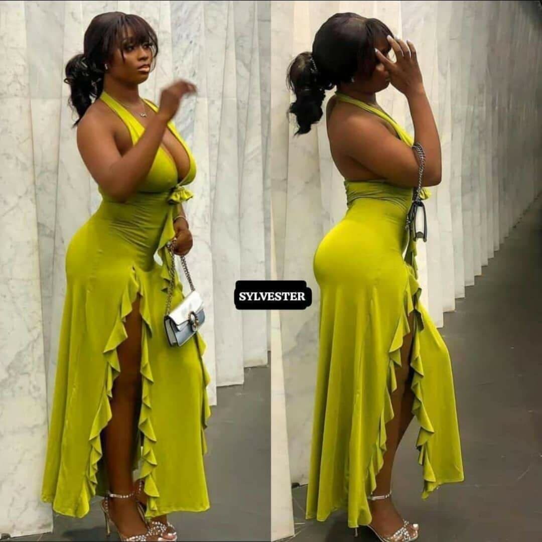 Cette robe verte élancée est parfaite pour des occasions spéciales avec son design échancré et sa coupe flatteuse. Parfaite pour se démarquer.