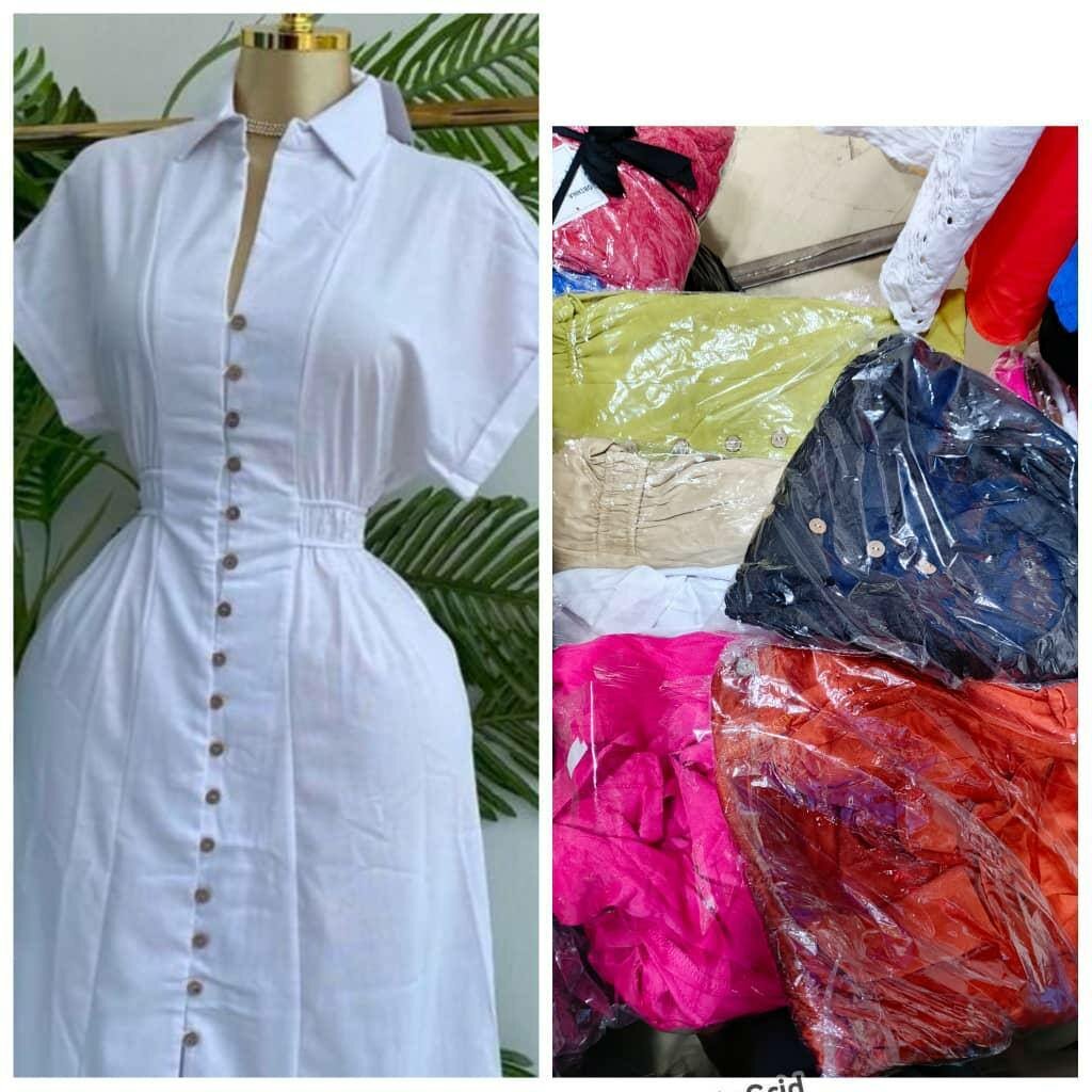Robe longue boutonnée avec ceinture - Chez Bachirou