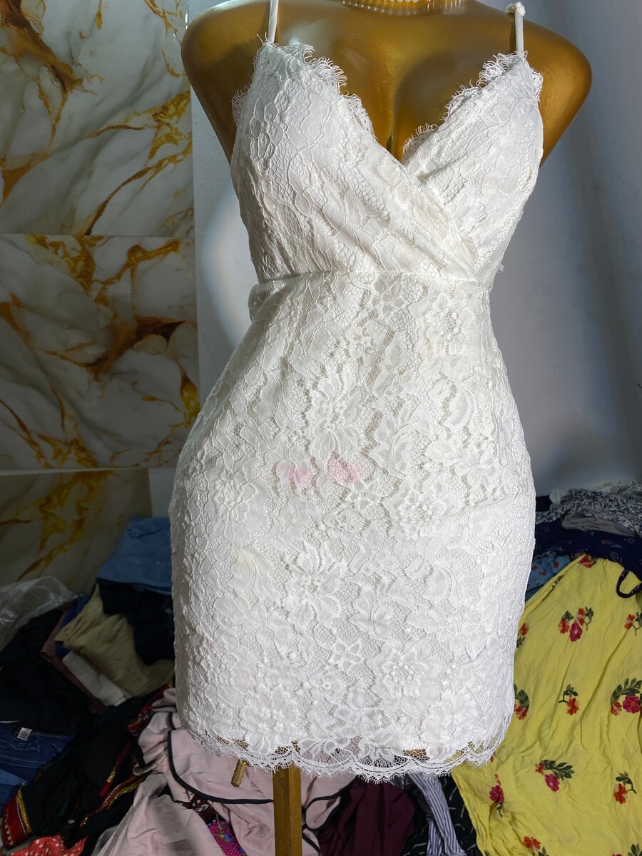 Découvrez cette robe en dentelle blanche élégante, parfaite pour les occasions spéciales et les soirées. Sa coupe ajustée et son décolleté en V mettent en valeur votre silhouette, tandis que la qualité de la dentelle offre une touche de sophistication. Idéale pour un look raffiné et intemporel.