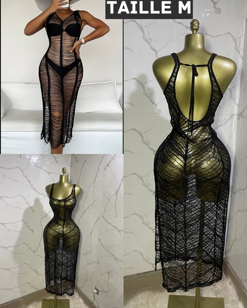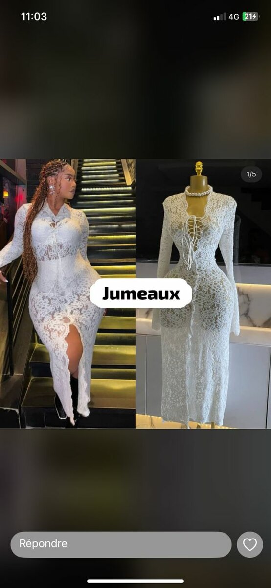 Élégante robe en dentelle blanche avec détail lacé et fente. Idéale pour soirées ou occasions spéciales. Tissu doux et confortable, design unique qui attire tous les regards.