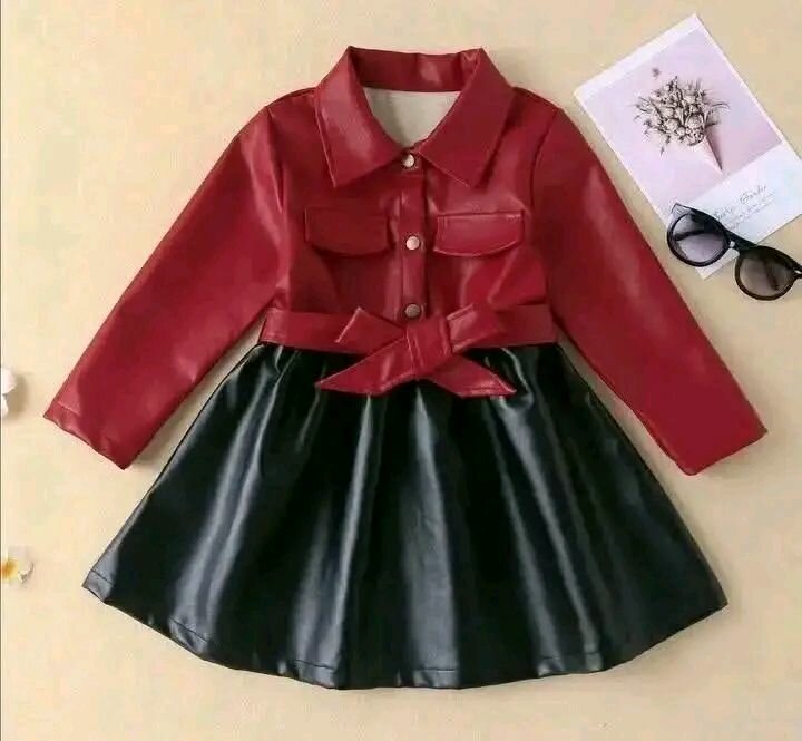 Cette robe pour enfants en faux cuir rouge et noir est une pièce élégante pour les occasions spéciales. Dotée de manches longues et d'une ceinture à nœud, elle est parfaite pour un look chic et moderne. Parfaite pour les fêtes ou les sorties, cette robe se démarque par son design unique et sa touche raffinée.