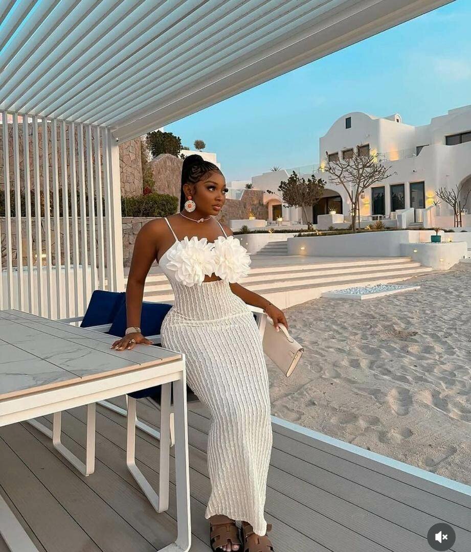 Élégante robe en maille avec motifs floraux en relief. Parfaite pour les soirées d'été ou les vacances à la plage. Offrant à la fois confort et style, cette robe sublime votre silhouette avec sa coupe ajustée et ses détails floraux sophistiqués. Un choix idéal pour un look glamour et tendance.