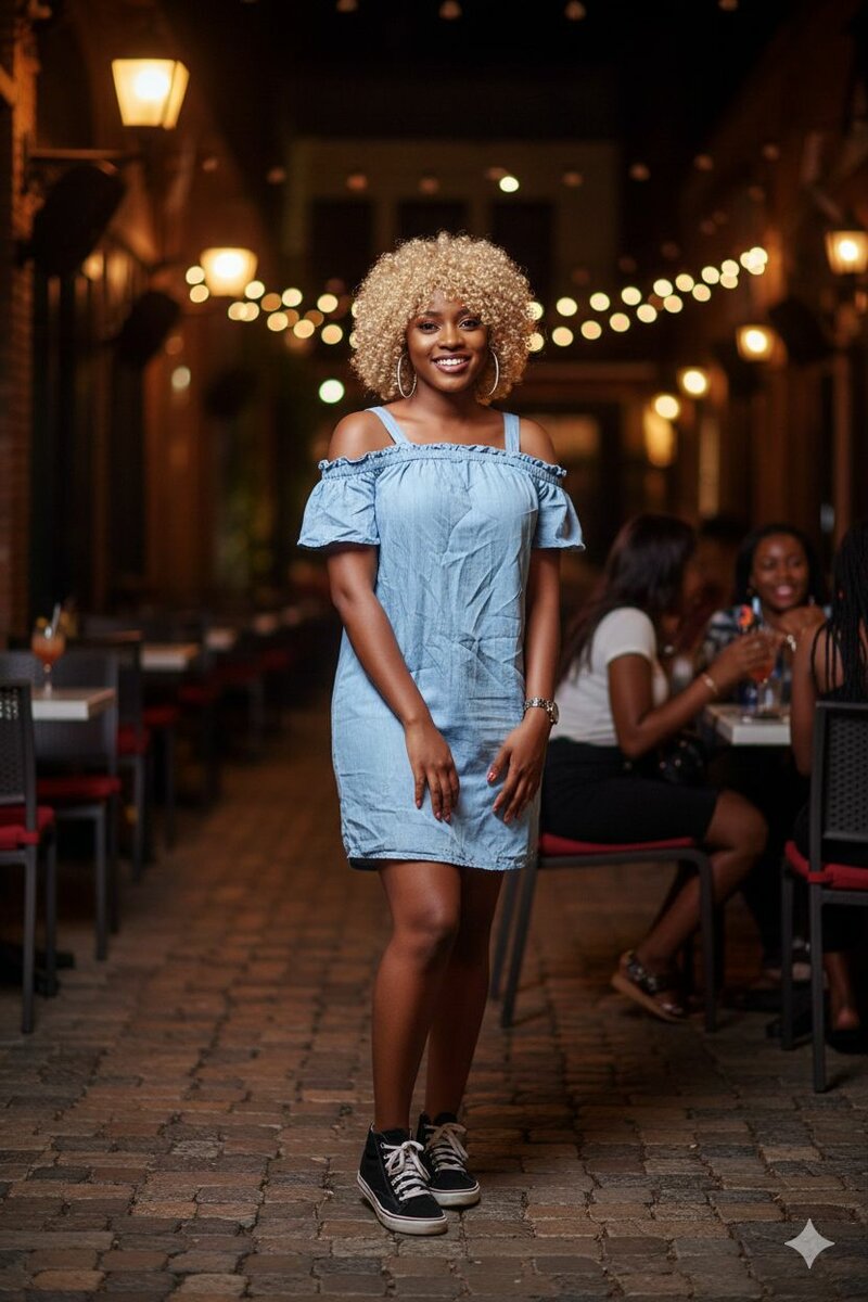 Cette robe en jean légère et décontractée est parfaite pour les sorties estivales. Avec son design épaule découverte et sa coupe flatteuse, elle assure un look tendance et confortable. Idéale pour un style casual ou un événement convivial, elle se marie parfaitement avec des baskets ou des sandales.