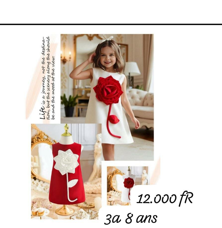 Robe chic pour filles de 9 mois à 7 ans , idéale pour les occasions spéciales. Design élégant avec grande fleur. Confortable et ravissante.
