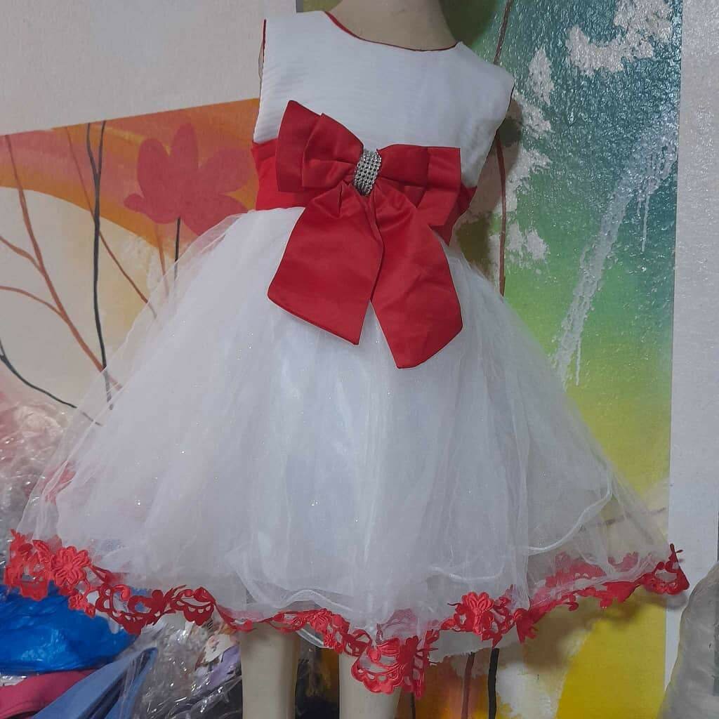 Cette magnifique robe rouge et blanche pour enfant avec un grand nœud rouge est parfait pour les occasions spéciales.