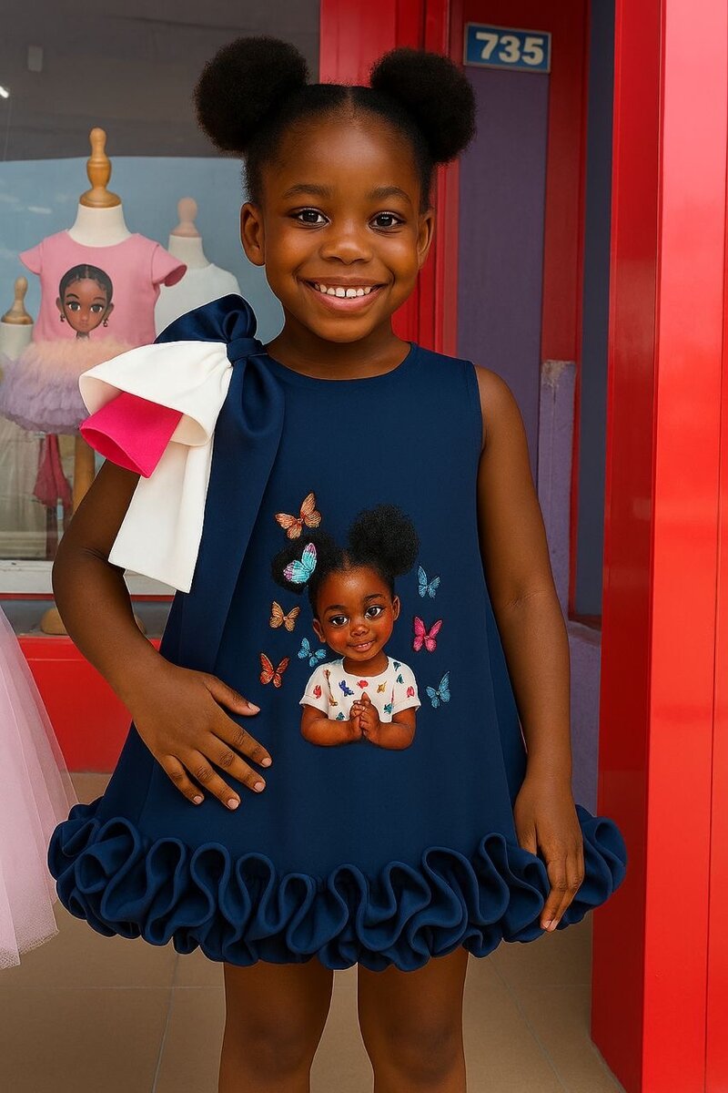 Robe élégante pour filles avec design de papillons et gros nœud. Parfaite pour les occasions spéciales.