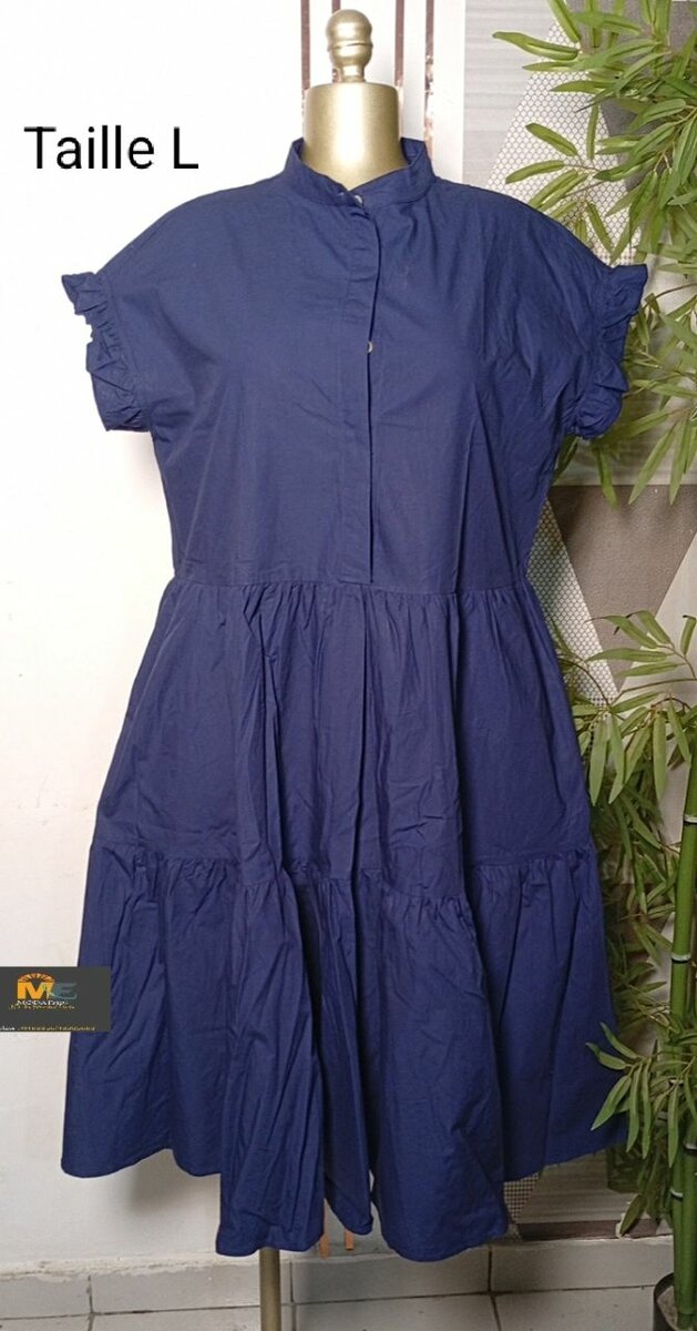 Élégante robe évasée en coton bleu marine, idéale pour l'été. Confortable et stylée, elle est parfaite pour une sortie décontractée ou un look quotidien. Taille L, avec manches courtes pour une sensation de fraîcheur. Mise en valeur de votre style tout en offrant un confort maximal. Un indispensable dans votre garde-robe!
