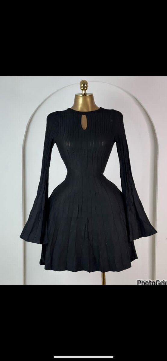 Cette robe évasée noire est parfaite pour ajouter une touche d'élégance à votre garde-robe. Fabriquée avec un tissu doux et fluide, elle offre un confort exceptionnel tout en mettant en valeur votre silhouette. Avec ses manches longues et son petit détail au col, elle convient pour les soirées habillées ou un dîner chic. Style intemporel qui s’harmonise avec divers accessoires pour différentes occasions. Idéale pour impressionner et se sentir confiante.