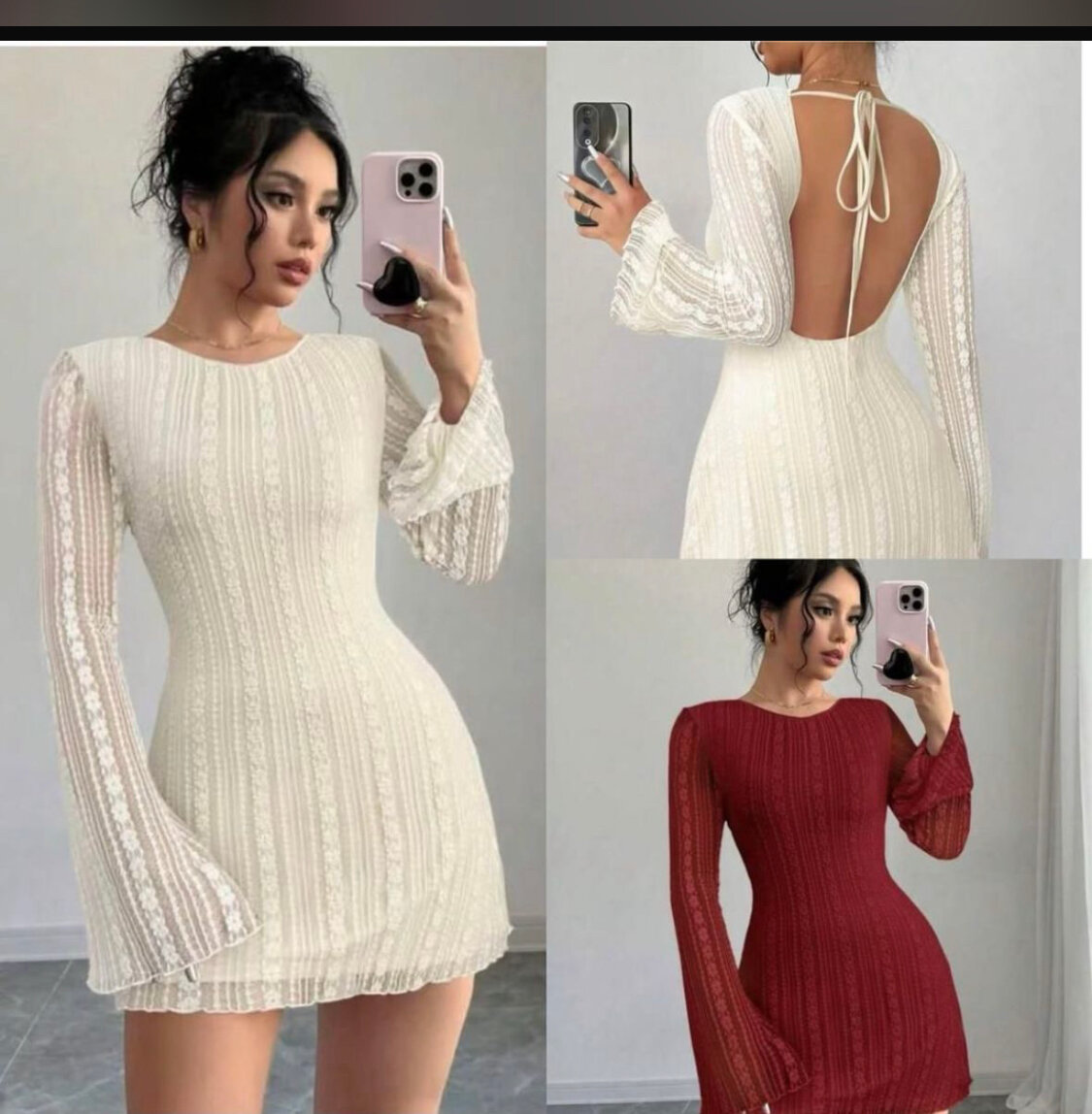 Découvrez notre robe évasée en dentelle, parfaite pour une soirée élégante ou une occasion spéciale. Fabriquée à partir de dentelle délicate, elle offre un effet visuel époustouflant. Ses manches longues ajoutent une touche de sophistication, tandis que le dos ouvert avec un nœud accentue votre élégance. Disponible en blanc et bordeaux, cette robe est votre alliée pour briller en beauté.