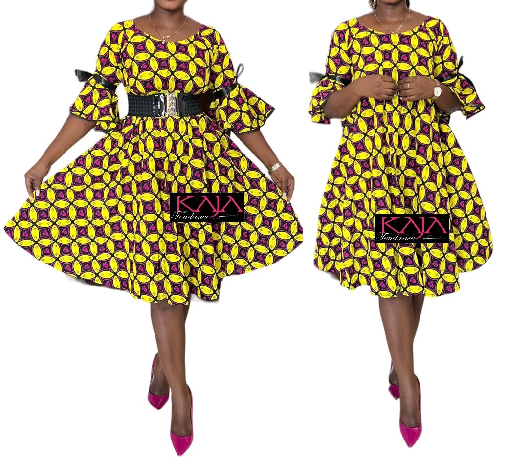 Découvrez cette robe évasée à imprimé vibrant, parfaite pour toutes vos occasions spéciales. Confectionnée dans un tissu léger et coloré, elle offre confort et style. Les manches à volant ajoutent une touche d'élégance, tandis que la ceinture souligne votre taille. Idéale pour les sorties estivales et les événements festifs, cette robe saura vous démarquer avec son design unique et sa palette de couleurs éclatantes.