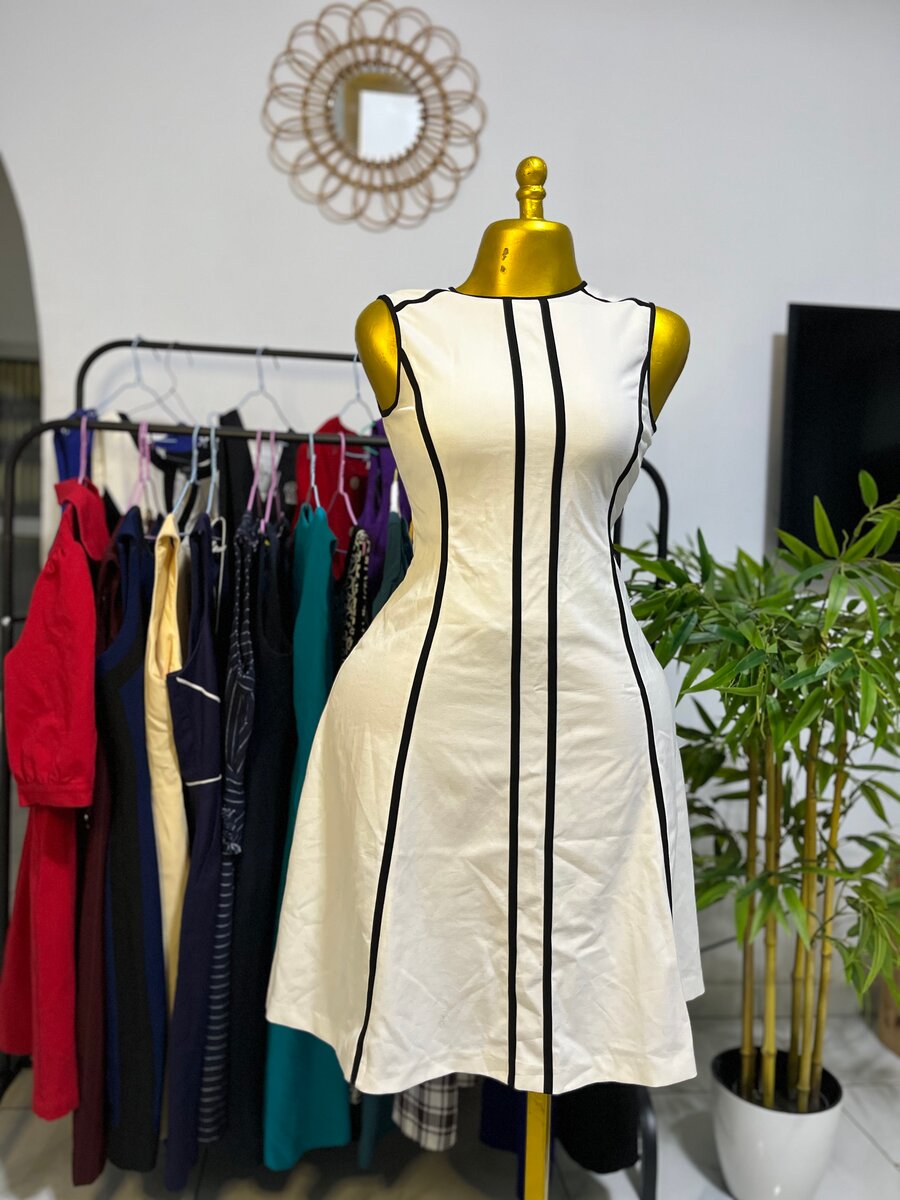 Robe évasée noire et blanche