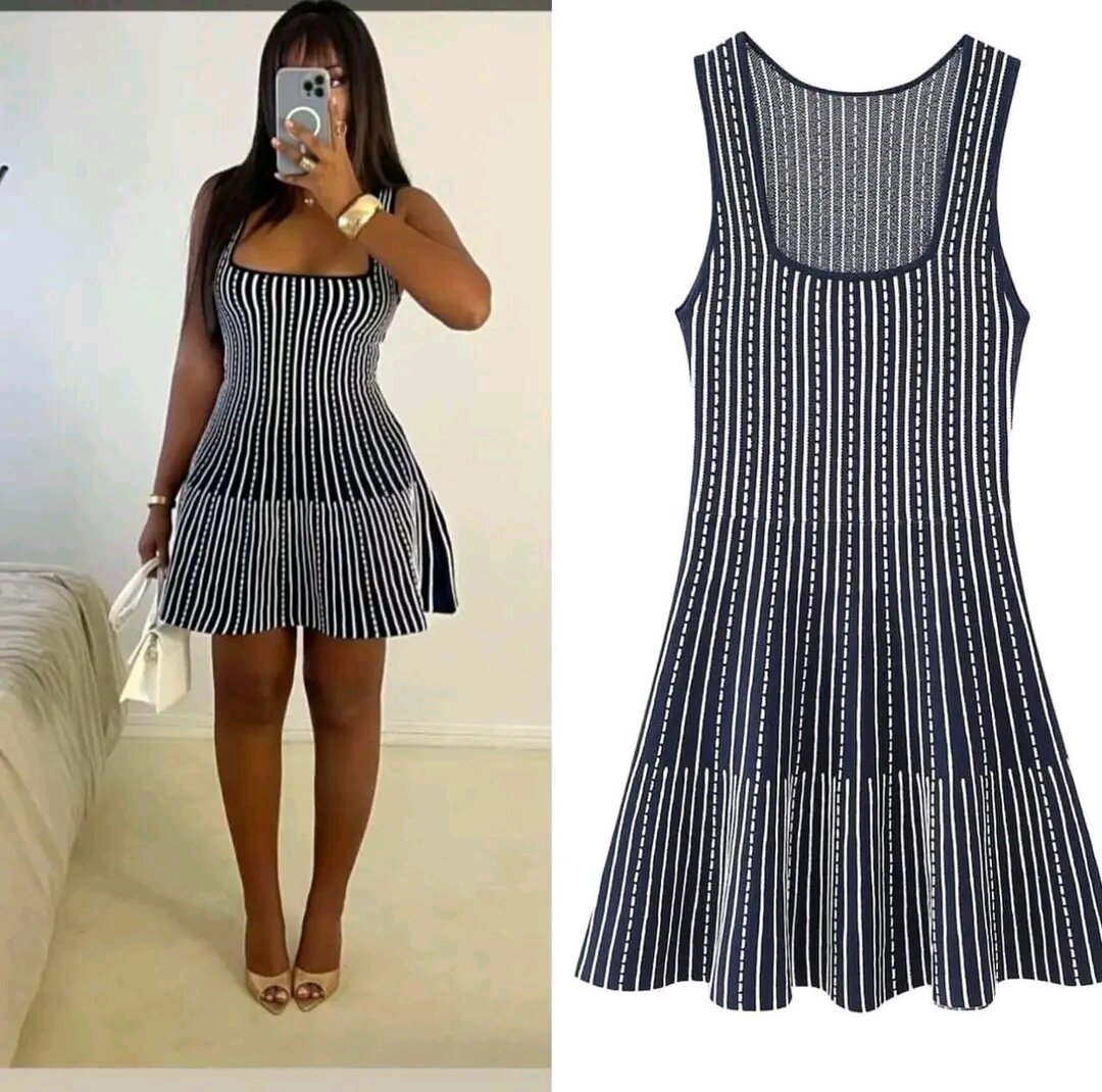 Découvrez cette élégante robe évasée à rayures, parfaite pour un look sophistiqué et moderne. Conçue avec une coupe flatteuse, elle apporte une touche de style à votre garde-robe. Idéale pour une soirée ou une sortie décontractée. Confortable et tendance, elle vous assure une allure impeccable en toute occasion.