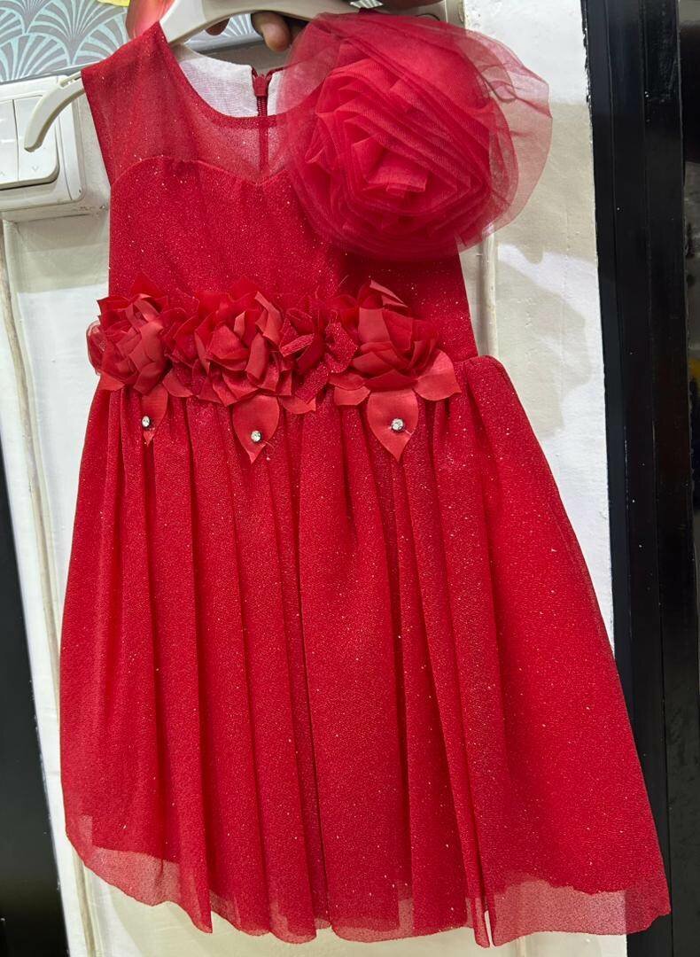 Élégante robe pour fille, idéale pour les cérémonies ou occasions spéciales. En tissu rouge étincelant avec des détails floraux et un nœud en tulle à l'arrière. Confortable, chic et parfaite pour faire briller votre petite princesse lors des événements mémorables.
