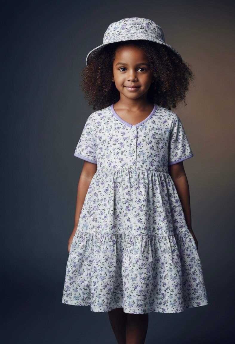 Ravissante robe d'été pour fille avec motif fleuri, parfait pour une journée ensoleillée. Léger et confortable, idéal pour les sorties et les occasions spéciales. Inclut un chapeau assorti pour un style complet. Disponible en plusieurs tailles.