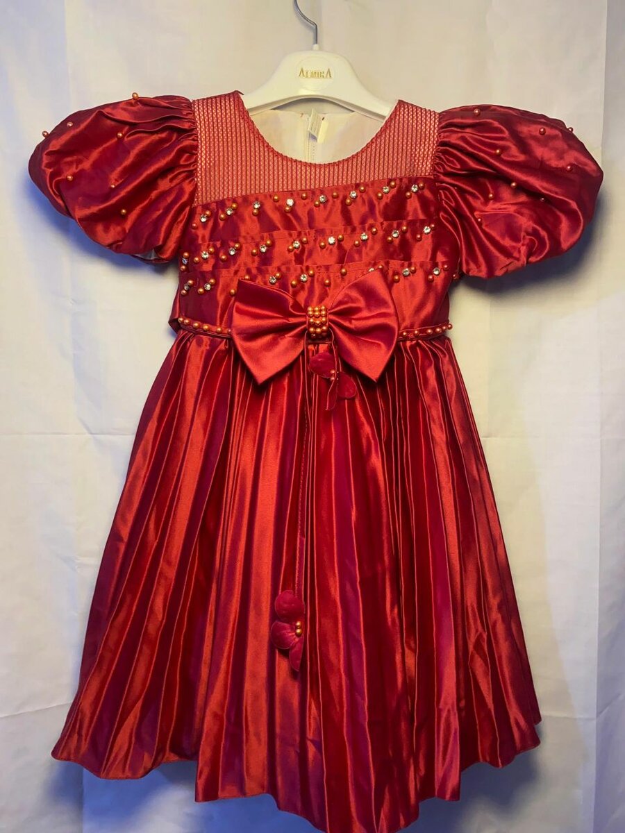 Cette magnifique robe en satin rouge est idéale pour les occasions spéciales. Ornée de perles et d'un grand nœud, elle apportera une touche d'élégance à votre fille. Parfaite pour les mariages, anniversaires ou fêtes de fin d'année. Confortable et stylée, elle fera briller votre enfant.