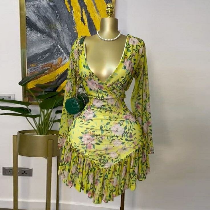 Élégante robe florale décolletée avec manches longues et ourlet volanté. Parfaite pour un dîner romantique ou une soirée estivale. Tissu léger et confortable, idéal pour les occasions spéciales.