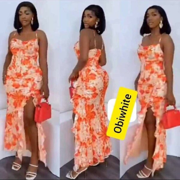 Fabuleuse robe d'été à volants avec imprimé floral vibrant. Parfaite pour les événements spéciaux ou une sortie élégante. Confortable et élégante.