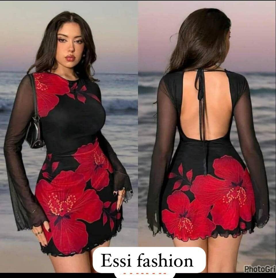 Découvrez cette élégante robe noire avec de magnifiques motifs floraux rouges, idéale pour une soirée ou une occasion spéciale. Dotée de manches longues et d'un dos ouvert, elle offre une allure sophistiquée tout en restant confortable. Parfaite pour celles qui souhaitent faire une impression durable, c'est un incontournable de votre garde-robe.