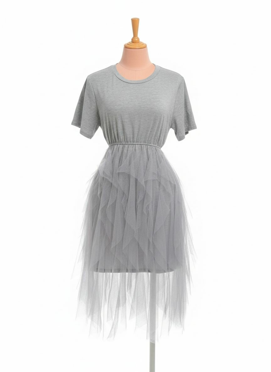 Découvrez cette élégante robe grise en coton avec une jupe en tulle vaporeuse. Idéale pour une tenue casual chic ou pour des événements spéciaux. La combinaison du haut confortable et de la texture fluide du tulle crée une silhouette flatteuse et moderne. Parfaite pour les journées de printemps ou d'été, cette robe offre une allure élégante tout en restant décontractée. Associez-la à vos accessoires préférés pour un style personnalisé et unique.