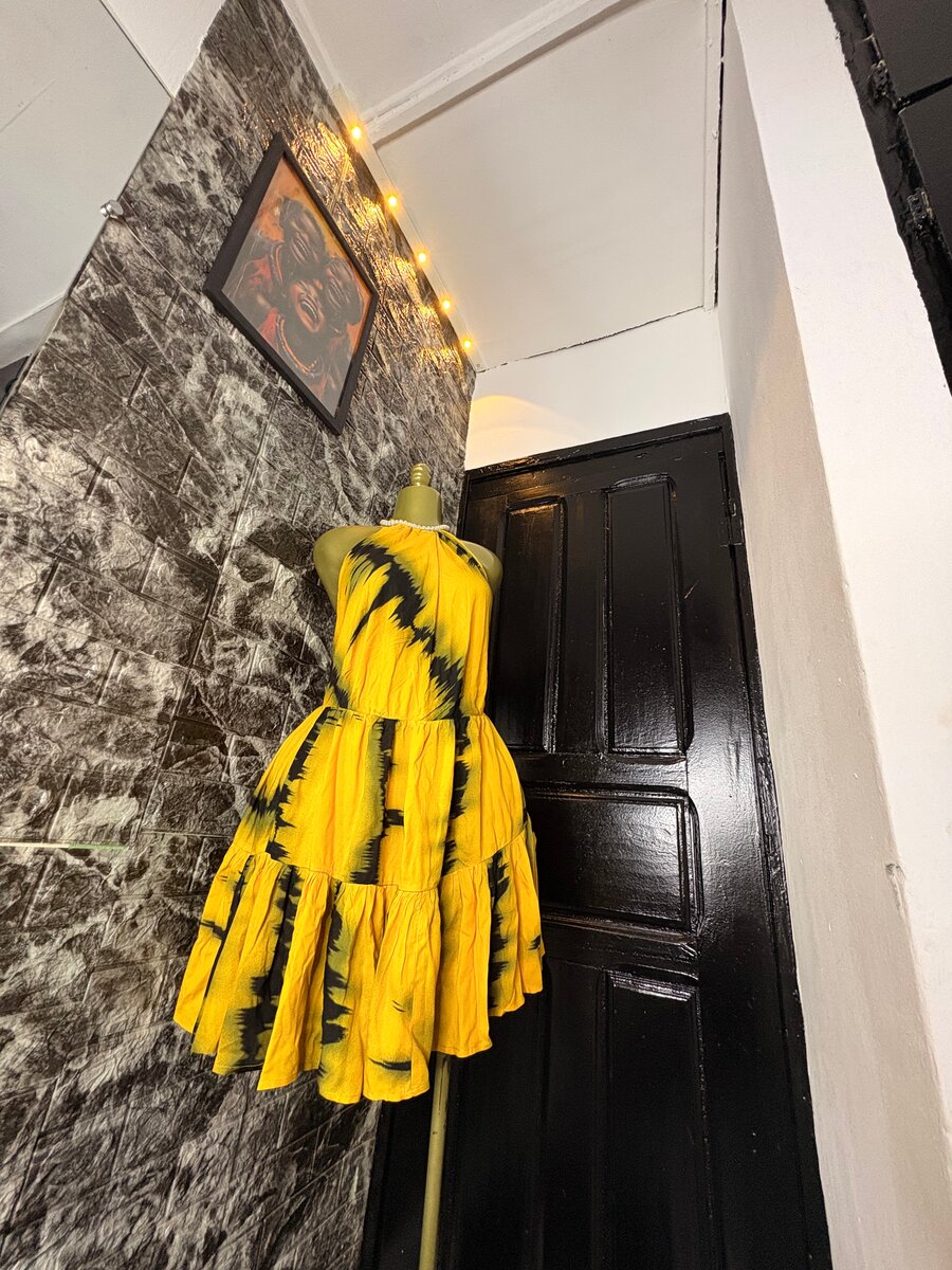 Faites sensation avec cette robe jaune éclatante aux motifs tie-dye. Parfaite pour les occasions estivales ou une sortie décontractée, elle allie confort et style. Sa coupe flatteuse s'adapte à toutes les silhouettes, offrant un look élégant et moderne. Idéale pour la femme qui aime se démarquer.