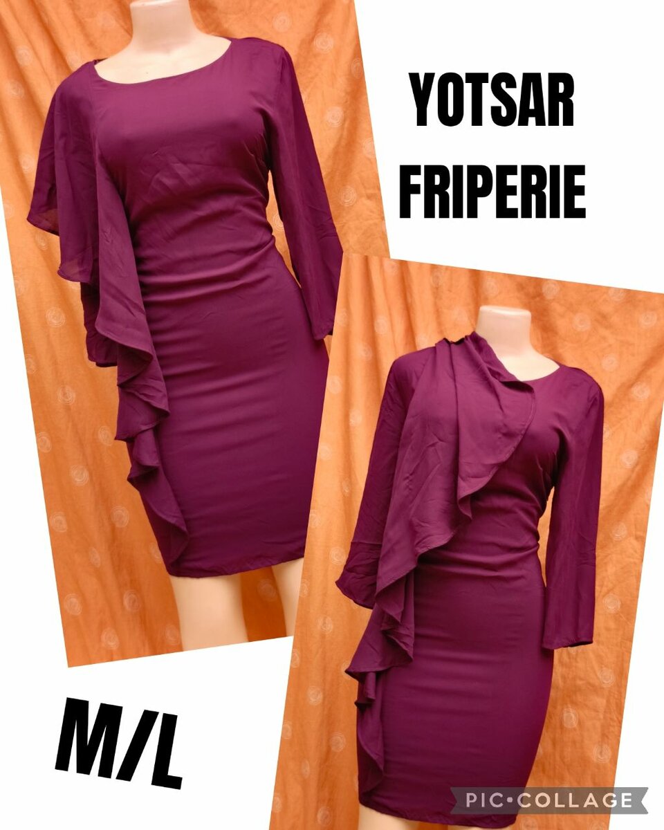 Découvrez cette robe élégante pour femme en couleur pourpre, idéale pour les occasions spéciales. Fabriquée dans un tissu doux et confortable, elle offre une coupe flatteuse avec des volants sur le côté. Disponible en tailles M/L. Parfaite pour un look chic et raffiné.