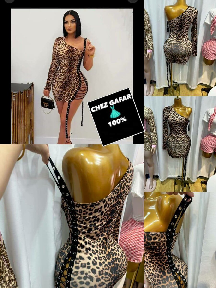 Mettez en avant votre style audacieux avec cette robe léopard sexy et asymétrique. Sa coupe moulante et son design unique à bretelles ajustables apportent une touche glamour et séduisante pour vos soirées. Parfaite pour les femmes qui veulent se démarquer et exprimer leur personnalité.
