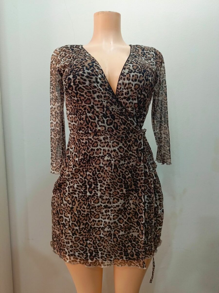 Adoptez un style audacieux avec cette élégante robe léopard transparente. Parfaite pour une soirée ou une sortie spéciale, elle met en valeur la silhouette avec sa coupe ajustée et son décolleté plongeant. Conçue pour celles qui aiment attirer l'attention, cette robe est un incontournable pour votre garde-robe.