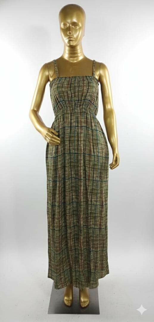 Élégante robe longue à motifs émeraude avec fines bretelles. Idéale pour les occasions spéciales et les journées ensoleillées. Offrez-vous un style intemporel et confortable !