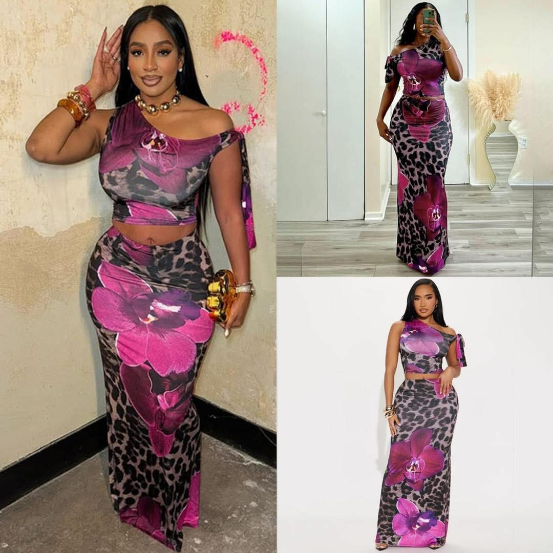 Ensemble Jupe Top Léopard Rose