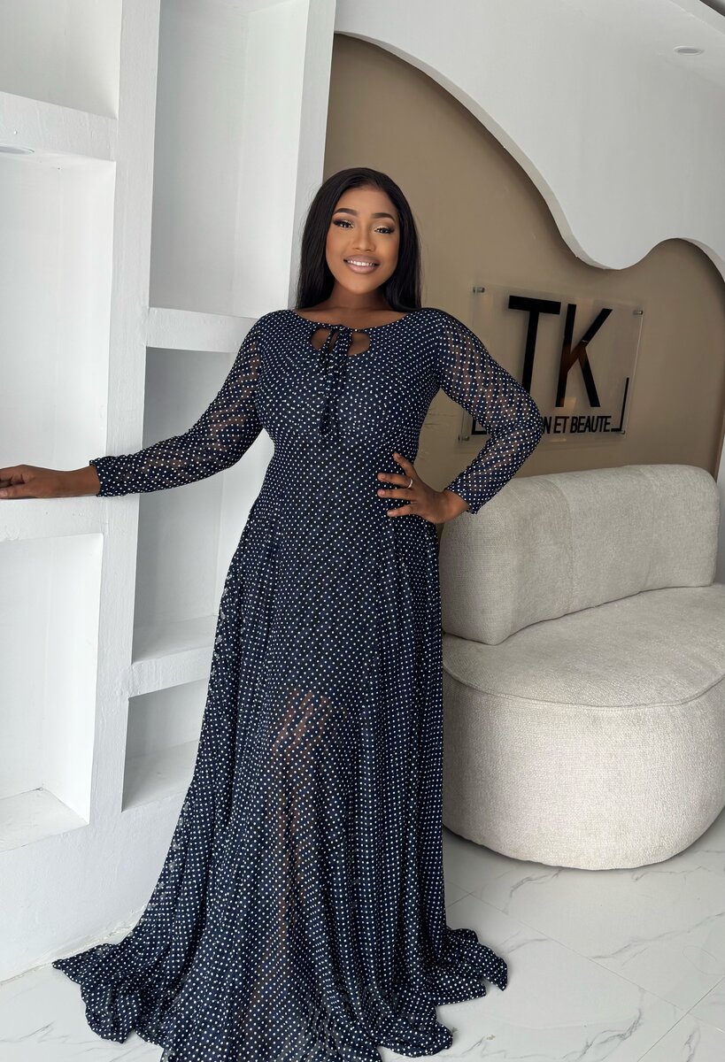 Découvrez cette magnifique robe longue à pois, parfaite pour toutes les occasions spéciales. Confectionnée dans un tissu fluide de haute qualité, elle offre élégance et confort. Son design à manches longues et son encolure délicate ajoutent une touche sophistiquée. Idéale pour événements formels ou soirées entre amis, cette robe mettra en valeur votre silhouette tout en assurant un style inoubliable. Ne manquez pas l'opportunité de briller avec cette pièce unique!