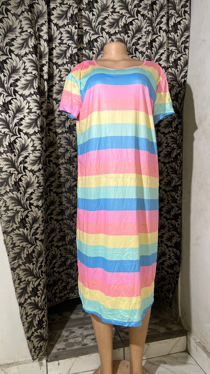 Découvrez le confort ultime avec notre robe longue à rayures vibrantes, parfaite pour les sorties décontractées ou la détente. Confectionnée dans un tissu doux et respirant, elle offre un style décontracté et une coupe décontractée. Idéale en toute saison, associez-la à des sandales ou des baskets pour un look chic.