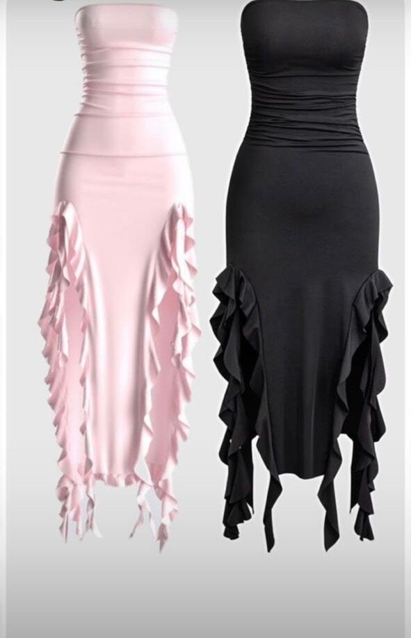 Découvrez l'élégance avec cette robe longue à volants. Parfaite pour des soirées ou occasions spéciales, elle offre une silhouette chic et féminine. Conçue avec des détails de volants distinctifs, elle est idéale pour impressionner. Disponible en noir et rose.