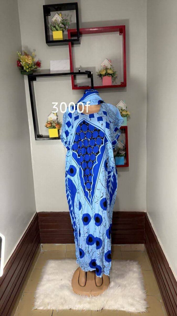 Élégante robe longue africaine en tissu imprimé bleu vif. Parfaite pour les occasions spéciales ou une tenue quotidienne stylée. Confection de qualité avec des motifs captivants qui attirent les regards, mélange d'aisance et d'élégance. Idéale pour ajouter une touche culturelle à votre garde-robe.