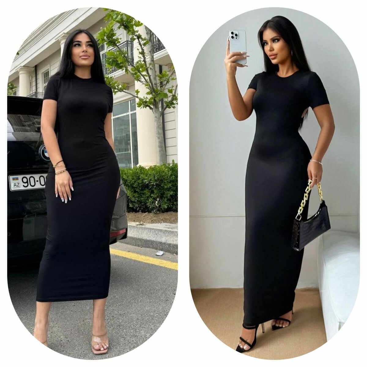 Découvrez la robe longue ajustée noire, idéale pour toutes occasions élégantes. Sa coupe flatteuse et son tissu confortable en font un choix parfait pour une soirée ou une sortie chic. Associez-la avec des accessoires dorés pour un look sophistiqué et moderne.