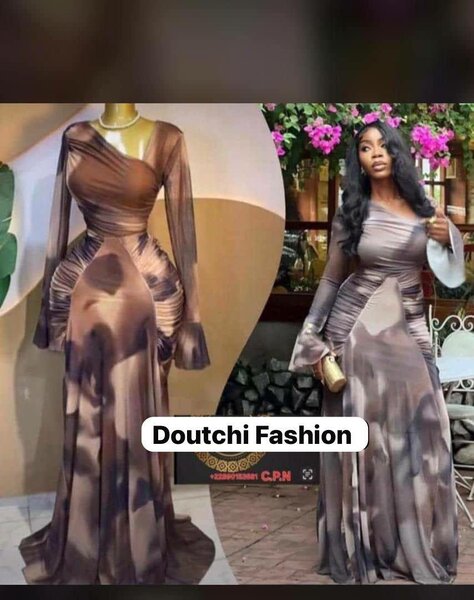 Sublimez votre apparence avec cette robe longue asymétrique au motif abstrait. Sa coupe unique et son tissu fluide offrent confort et style pour toutes les occasions spéciales. Idéale pour les soirées et événements.