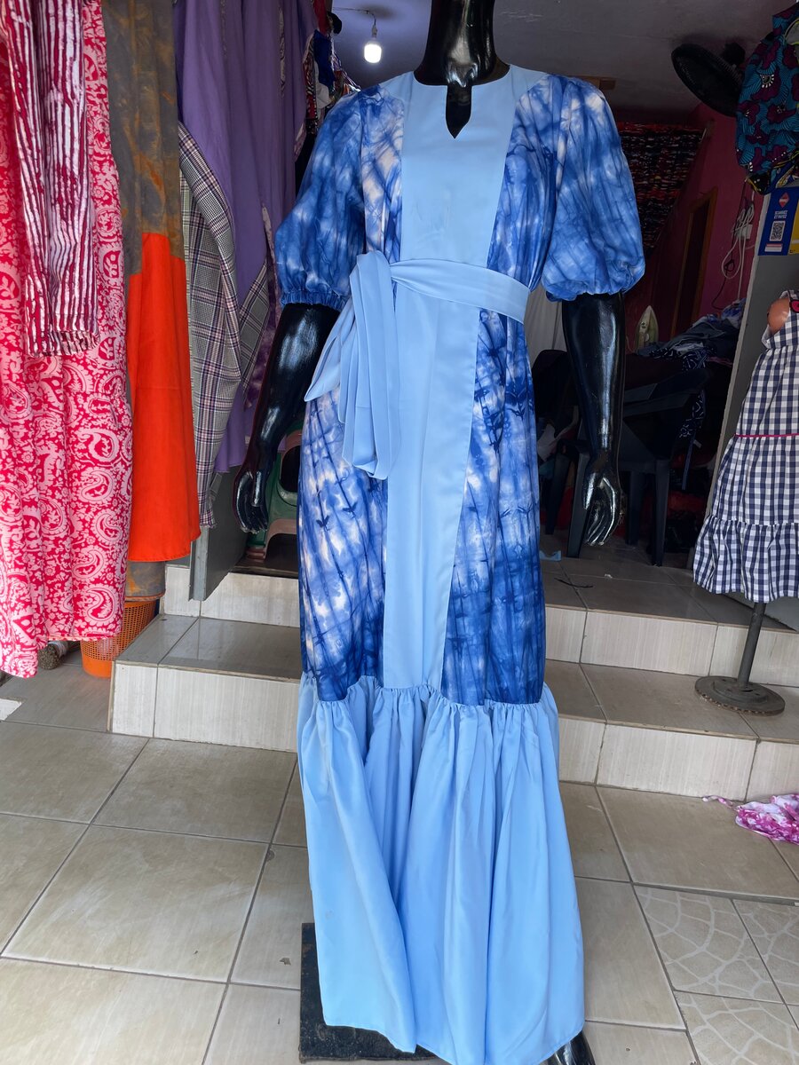 Élégante robe longue bleue avec motif bohème. Idéale pour les soirées d'été ou événements décontractés. Confort respirant et style unique.