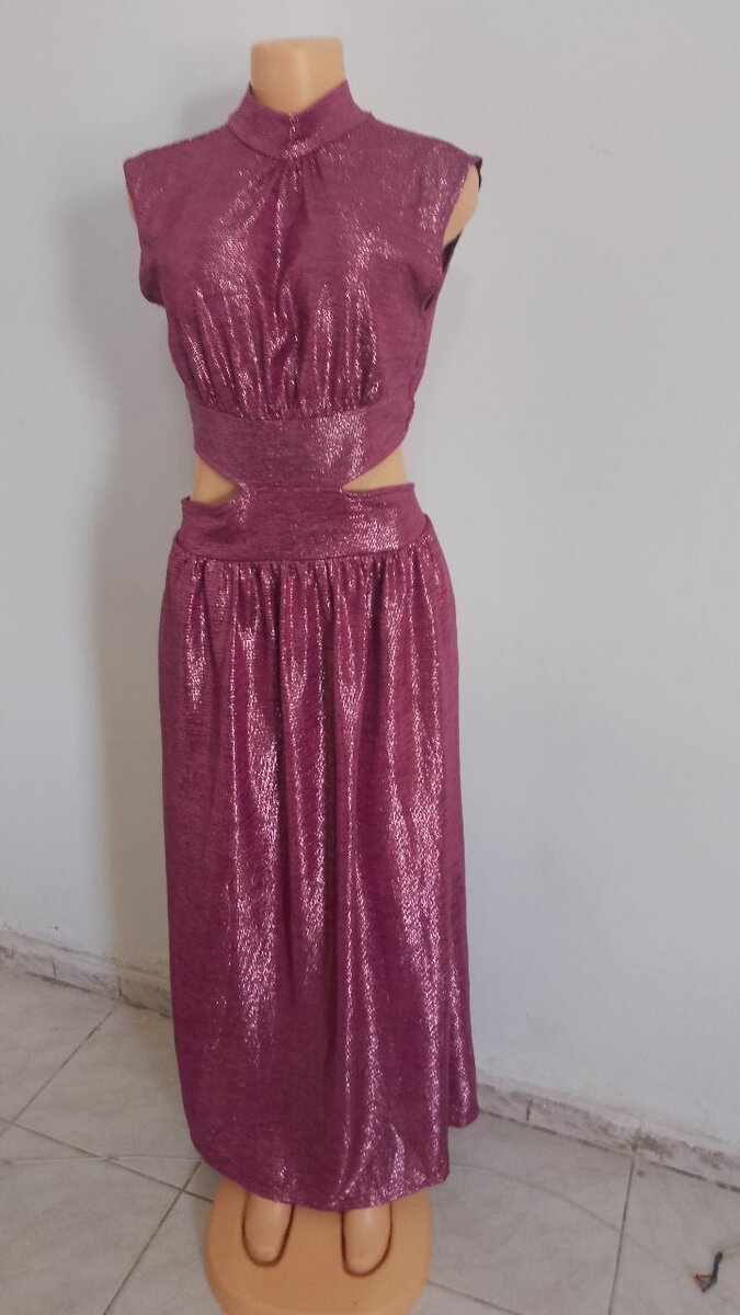 Éblouissante robe longue pour femme, idéale pour les occasions spéciales. Cette robe en tissus brillants met en valeur votre silhouette avec des découpes élégantes et modernes. Parfaite pour soirées et événements.
