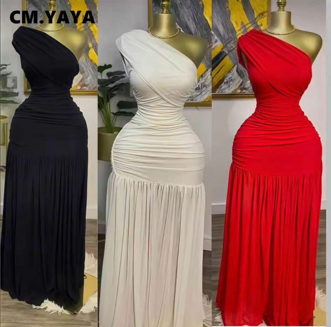 Optez pour l'élégance avec cette robe longue asymétrique. Parfaite pour les soirées ou événements spéciaux, sa coupe flatte la silhouette. Disponible en plusieurs couleurs pour s'adapter à votre style.