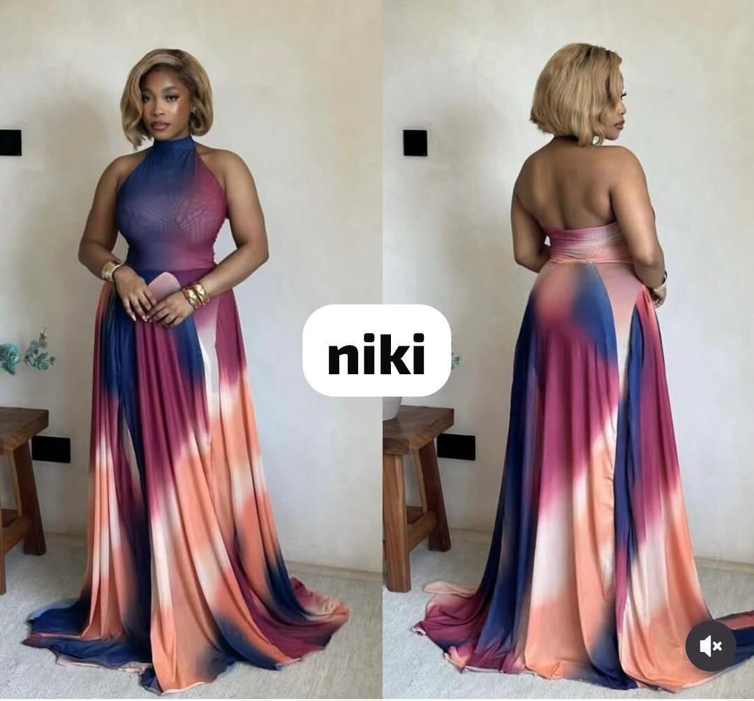 Cette robe longue élégante au dégradé de couleurs vives est parfaite pour les occasions spéciales. Avec son design sans manches et son dos ouvert, elle offre une allure sophistiquée et moderne. Idéale pour un mariage, un gala ou une soirée estivale, cette robe saura vous démarquer.