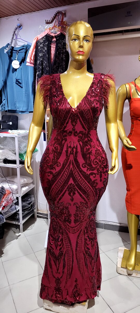 Ravissante robe longue bordeaux ornée de sequins et plumetis. Idéale pour soirées et événements spéciaux. Style flatteur et sophistiqué pour un look glamour. Fabrication de qualité pour un confort optimal. DISPONIBLE