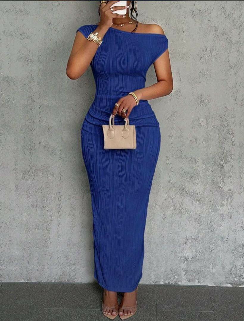 Sublimez votre allure avec cette robe longue asymétrique en bleu profond. Parfaite pour une soirée ou une occasion spéciale, elle épouse vos formes avec élégance. Offrez-vous une touche de sophistication et un style irrésistible.