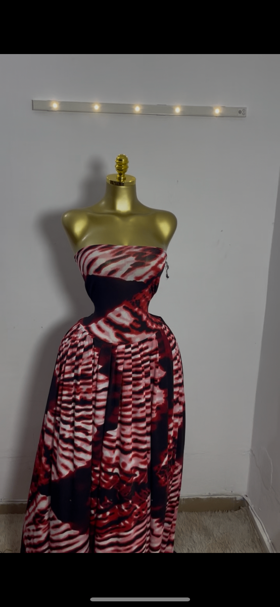 Découvrez cette magnifique robe longue bustier avec un design unique et captivant. Parfaite pour les soirées et occasions spéciales, sa coupe flatteuse mettra en valeur votre silhouette. Faites sensation et démarquez-vous avec style!