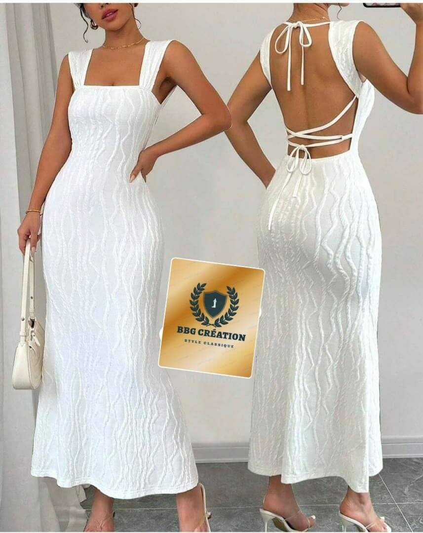 Découvrez notre robe longue blanche, parfaite pour les occasions spéciales. Avec son design dos nu et sa coupe flatteuse, cette robe est idéale pour un look chic et glamour. Fabriquée avec des matériaux de haute qualité, elle assure confort et style à chaque port. Ne passez pas à côté de cette pièce incontournable!